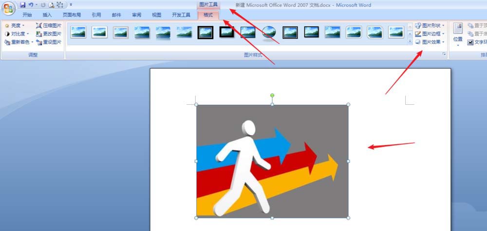2、选定我们需要进行三维旋转效果设置的图片,然后点击“图片工具”--“格式”--“图片效果”。