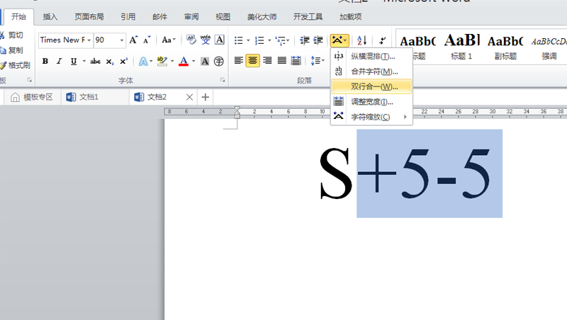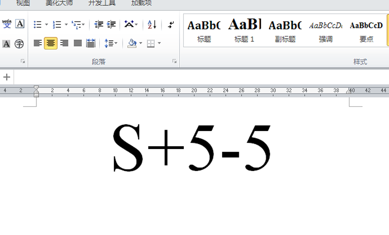 1、新建一个空白文档,为了演示效果,输入添加上下标的内容s+5-5.