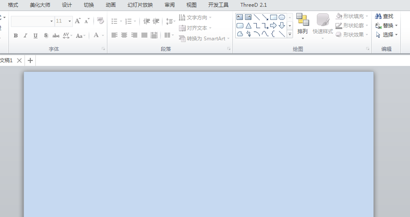 1、首先启动ppt2010,删除所有标题文本框,设置背景颜色为蓝色。