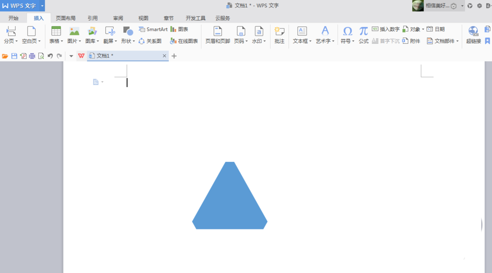 3、我们可以从最上面的主操作栏中来找到插入选项,打开插入选项就可以看到形状,缺角三角形就在形状中,如图
