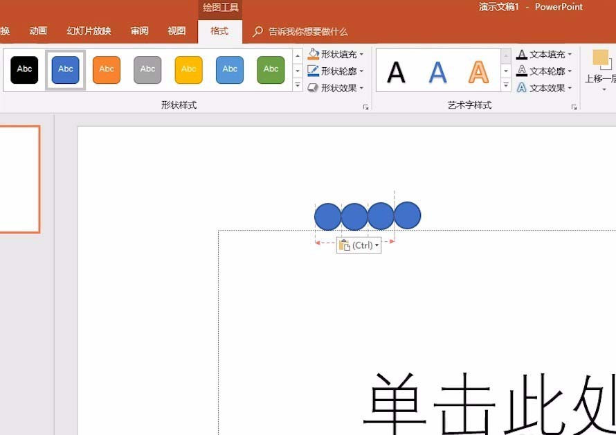 3、在画布中绘制连续的圆形连接,按住shift键即可绘画正圆形。