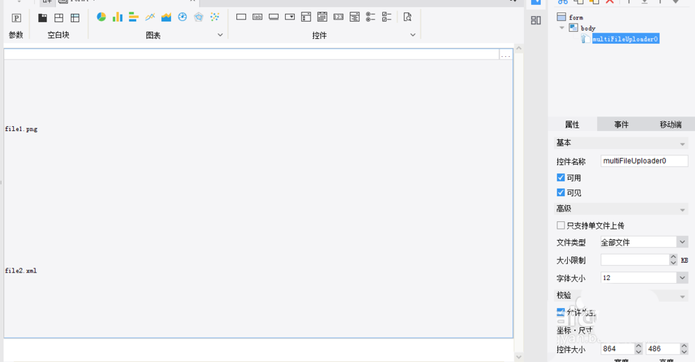 2、在控件中,找到文件上传控件,拖动到决策报表编辑区域,如下图所示: