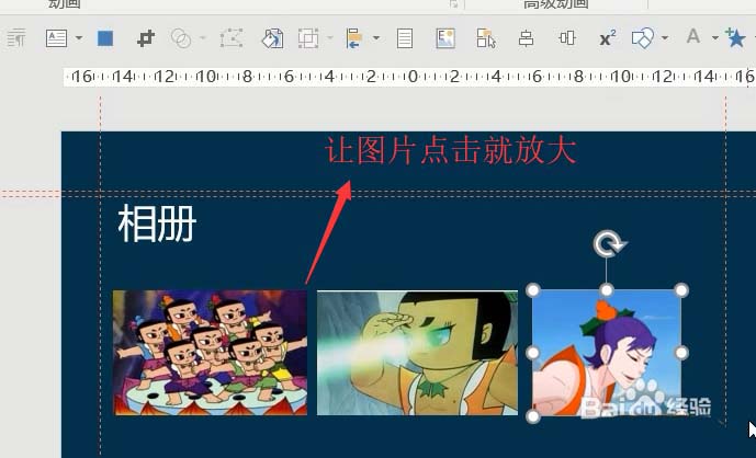 6、最后我们预览PPT,当鼠标放上图片的时候,你就会发现图片放大了,如下图所示