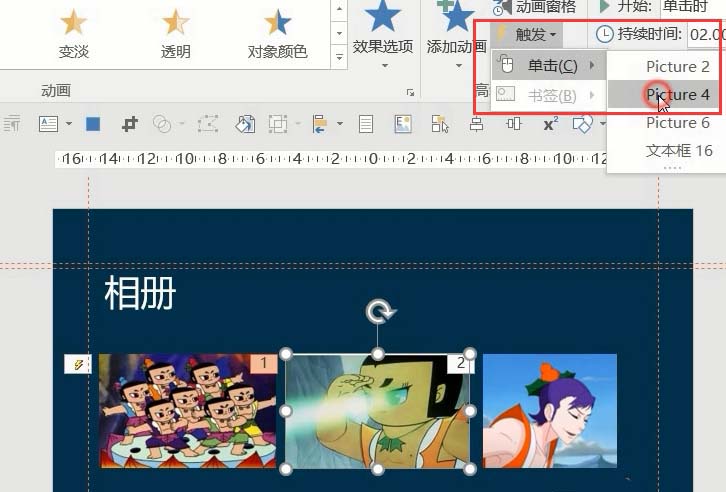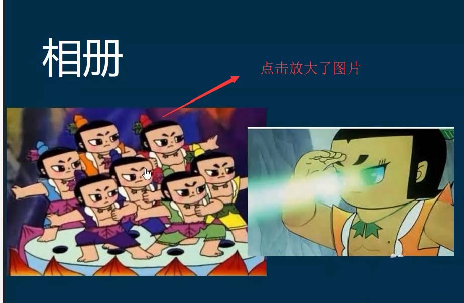 3、接下来选中一个图片要为图片设置点击放大的效果了,如下图所示