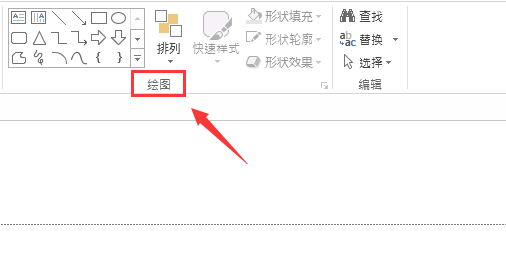 1、我们将PPT打开之后在它的常用菜单里找到绘图选项,如图所示: