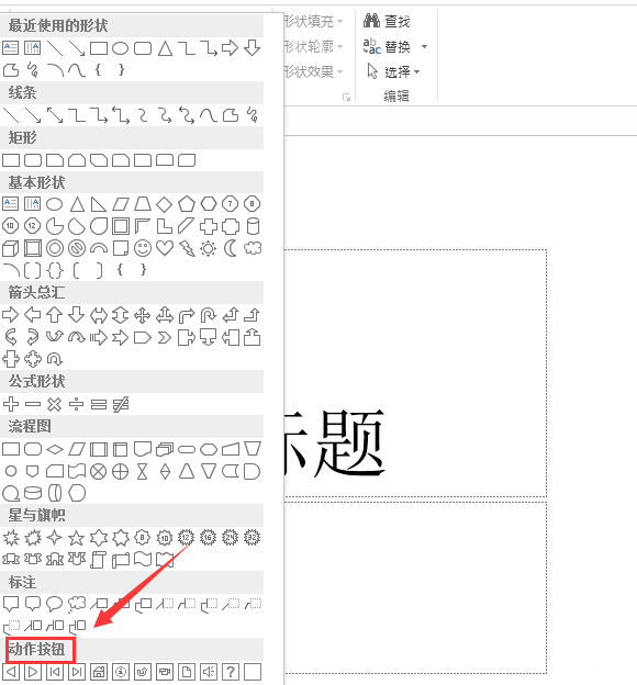 2、点击绘图选项内的其他选项,然后在它的下拉菜单里找到动作按钮,如图所示: