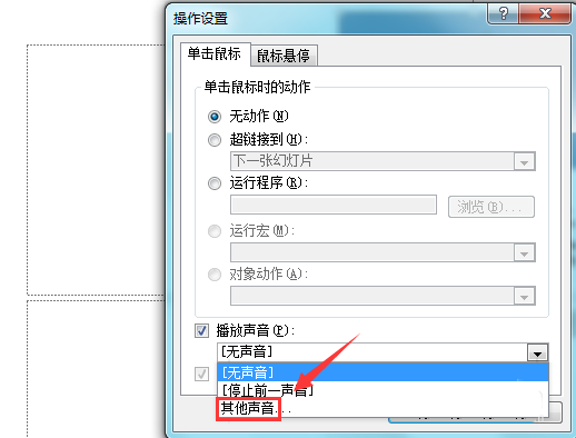4、点击声音按钮选项弹出操作设置对话框,如图所示:
