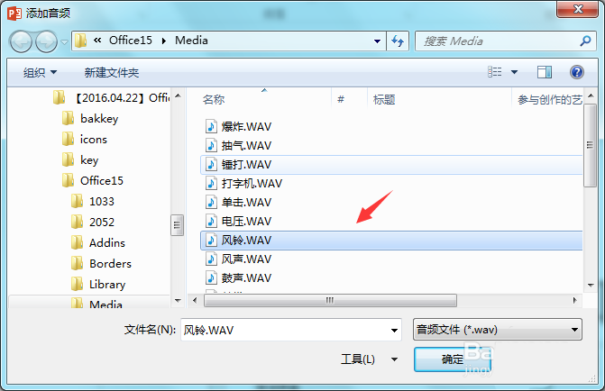 7、点击其他声音选项之后在弹出的对话框内选择需要的声音文件,然后点击确定点击播放使用鼠标点击之后就会发出我们设置的声音了,如图所示:
