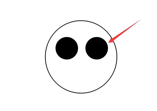 2、再画两个小点的圆形,作为表情包的眼睑。设置为填充色为黑色,轮廓线为无色,并按下图位置放弃好。哈哈,有点像外星人了。