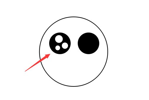 3、画瞳孔,在眼睑里画出三个不同大小的圆形,如下图,并设置好填充色为白色,轮廓线为无色,按下图位置放置好。