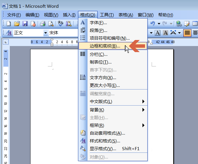 2、点击格式菜单中的【边框和底纹】。