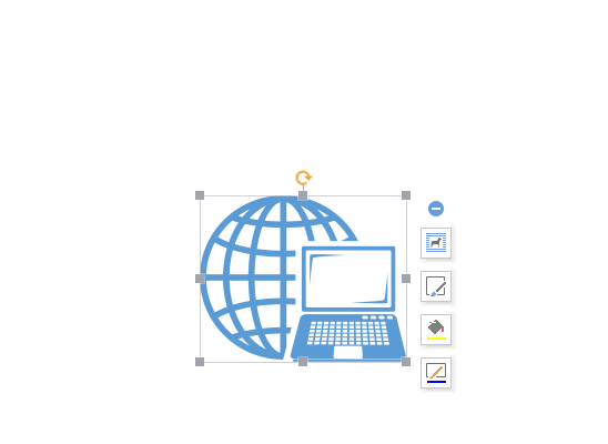 5、这个互联网的图形我们可以调整它的大小,方法是点击图形出现边界的小点以后,点击这些点进行拉伸就可以随意更改图形的大小