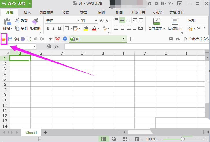 2、然后,在快速访问工具栏中,选择打开图标,如图所示