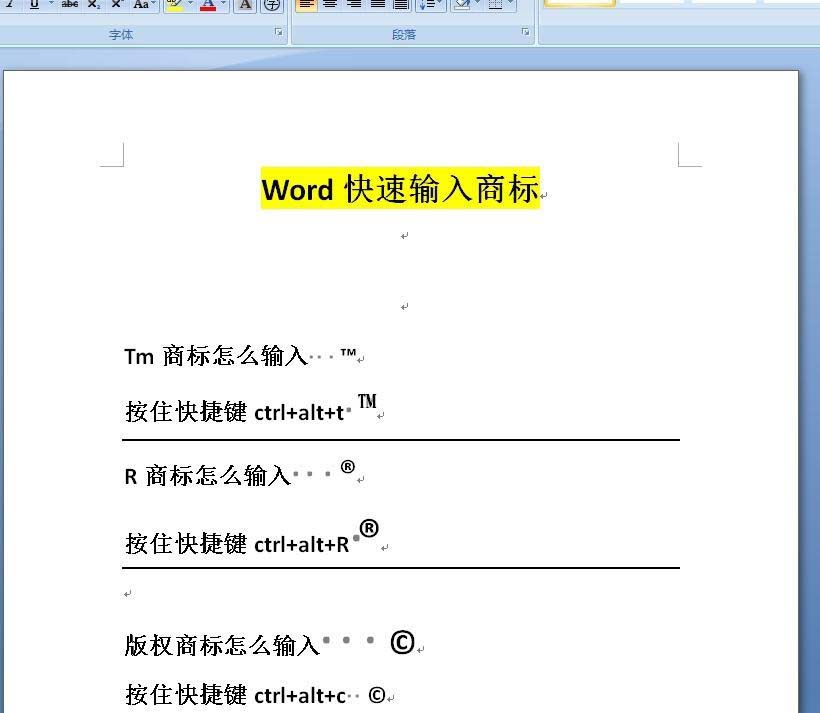 6、所以,结论就是,只要按住ctrl+alt,再加一个商标的首字母,就可以打出商标来了,是不是很简单呢,赶紧收藏起来吧。