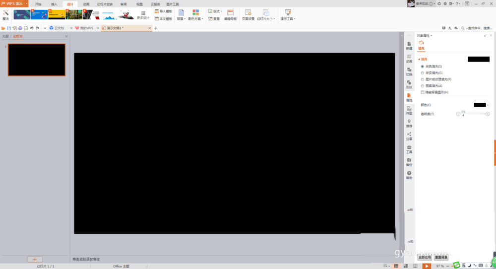 1、新建幻灯片,设置为“黑色”背景。