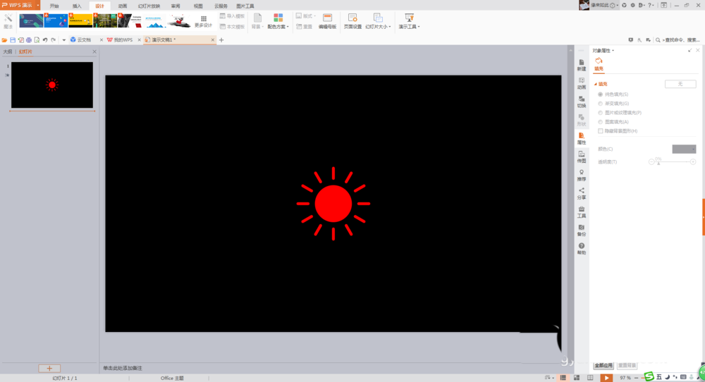 2、插入圆形和长方形形状,制作出太阳及其光芒。