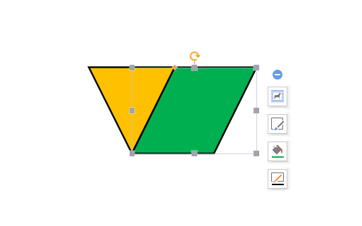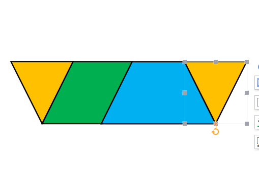 2、使用【形状】——【平行四边形】画出一个平行四边形,如下图,设置填充色为【绿色】,轮廓线为【黑色】,并将【宽度】绝对值设置为【2.6】,【高度】的绝对值设置为【1.8】。并通过微调工具,将平行四边形调整得和三角形相接。