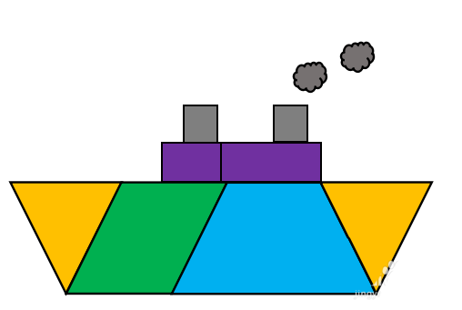 4、再次参照第一步操作,画出一个倒三角形,颜色、宽度、高度和第一步一样,然后放在最后,这样就画好了整个轮船的船体了。如下图所示