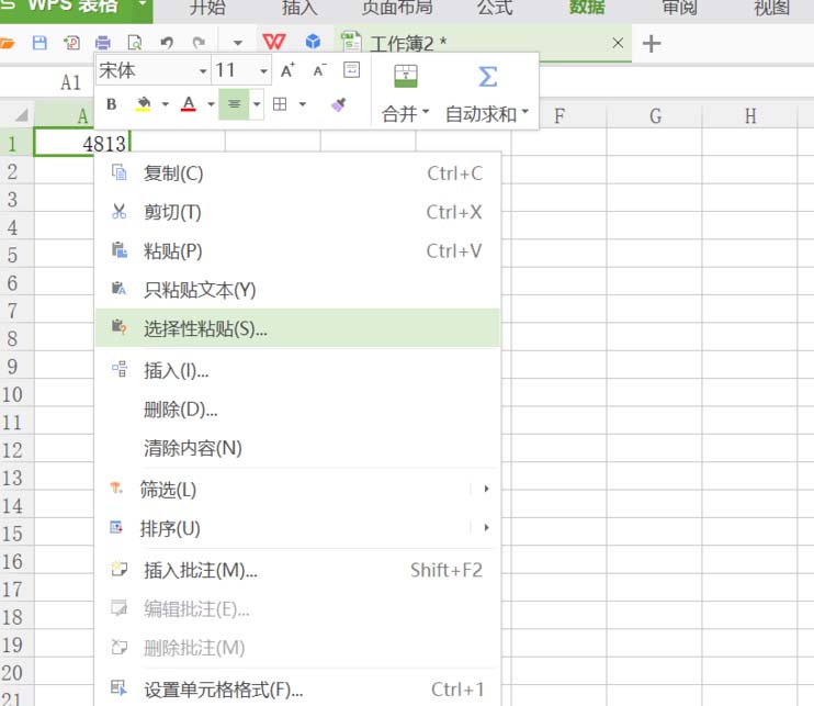 2、粘贴之后,右击选择选择性粘贴。如图。