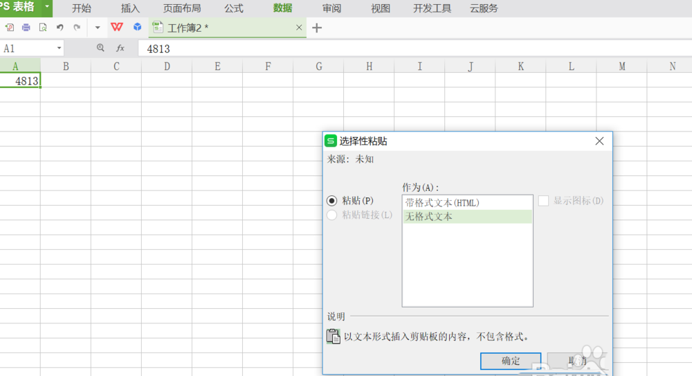 3、然后选择无格式文本,如图。