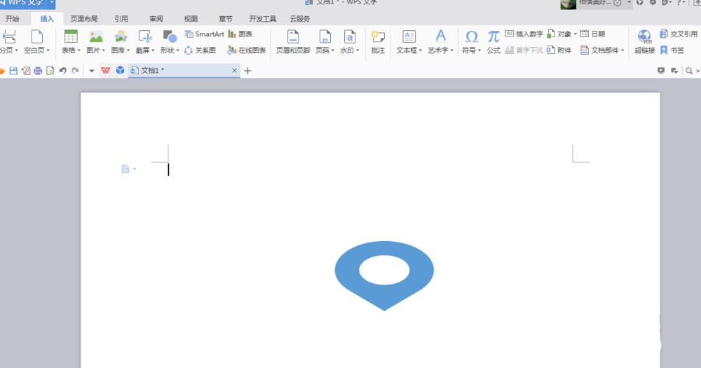 4、找到并选择定位图标以后,在WPS的空白处点击鼠标左键,这样就可以出现定位图标,如图