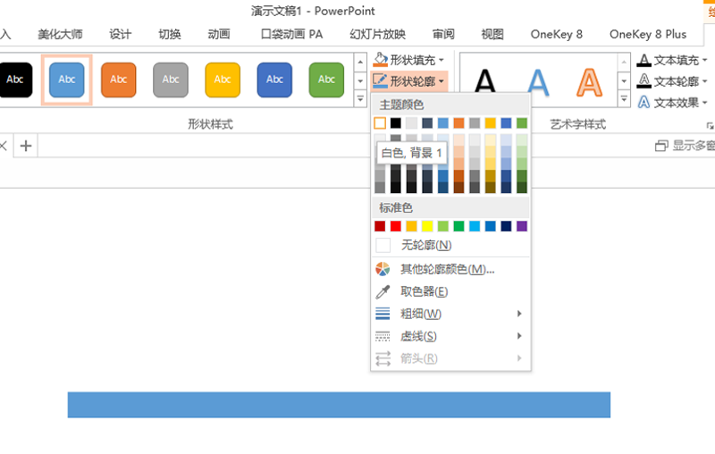 2、选择矩形,执行格式-形状填充命令,设置边框为白色。