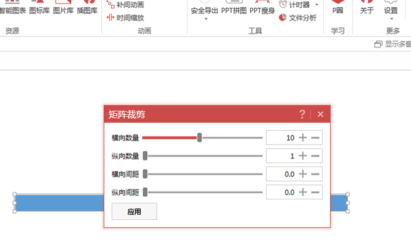 4、设置横向数量为10,纵向数量为1,其他不变,点击应用按钮。