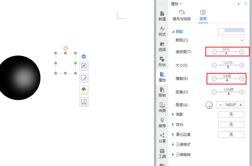 5、接着我们通过调整透明度和模糊,可以实现光影的效果,如下图