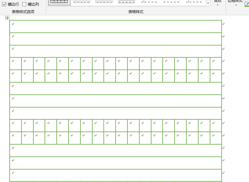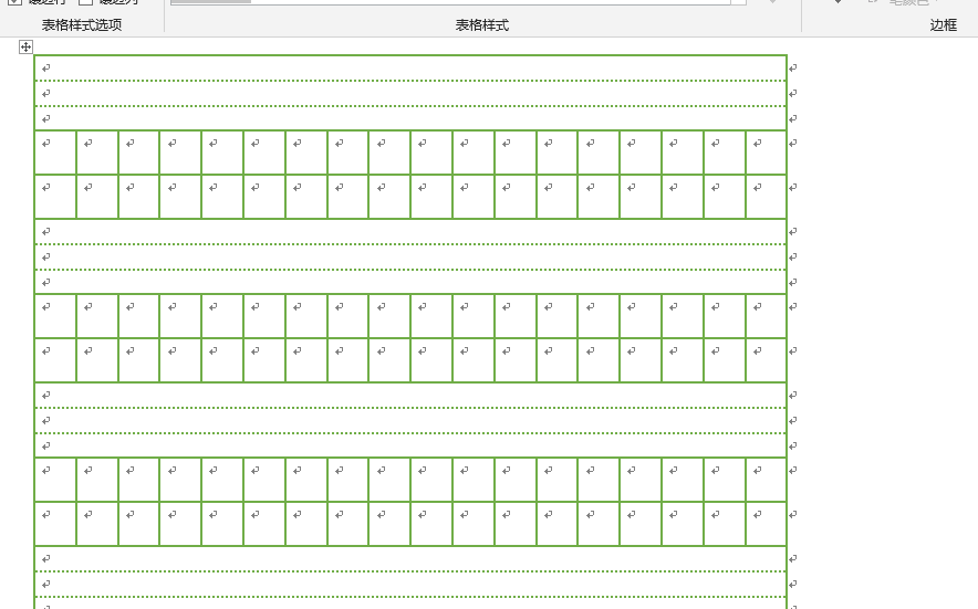 7、选中第一行,合并第一行所有单元格。后面的,我们直接使用「F4」快捷键,重复上一步操作。按照四线三格的格式进行【合并单元格】