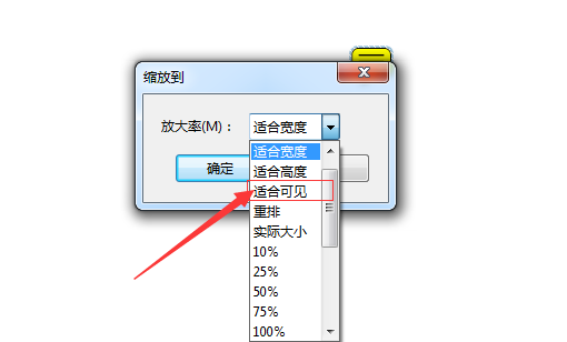 5、进行点击了放大率之后,弹出了下拉菜单选中为适合可见的选项。