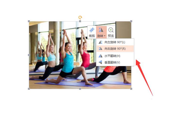 1、插入图片后在右上角会出现一个图片编辑的工具,然后点击选择旋转工具,如图所示。
