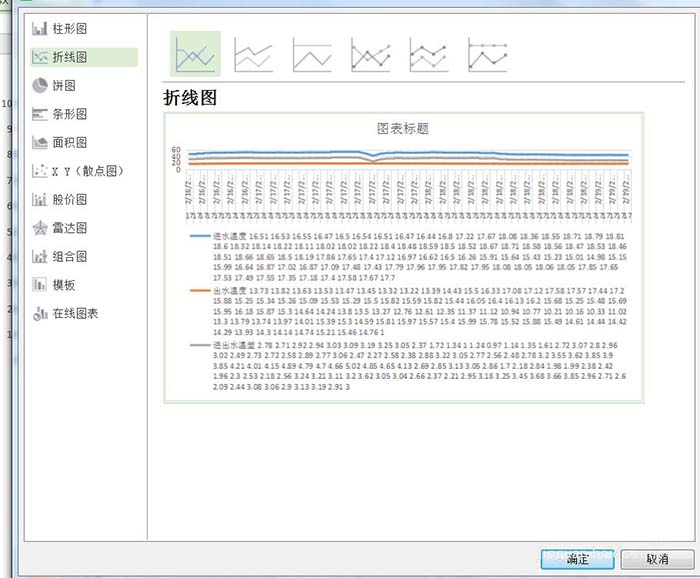 6、我们可以选择折线图,上方还有不同的折线图表。