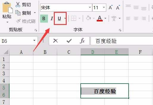 7、点击双下划线选项,可以看到单元格内的文字就出现了双下划线,如图所示: