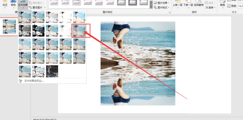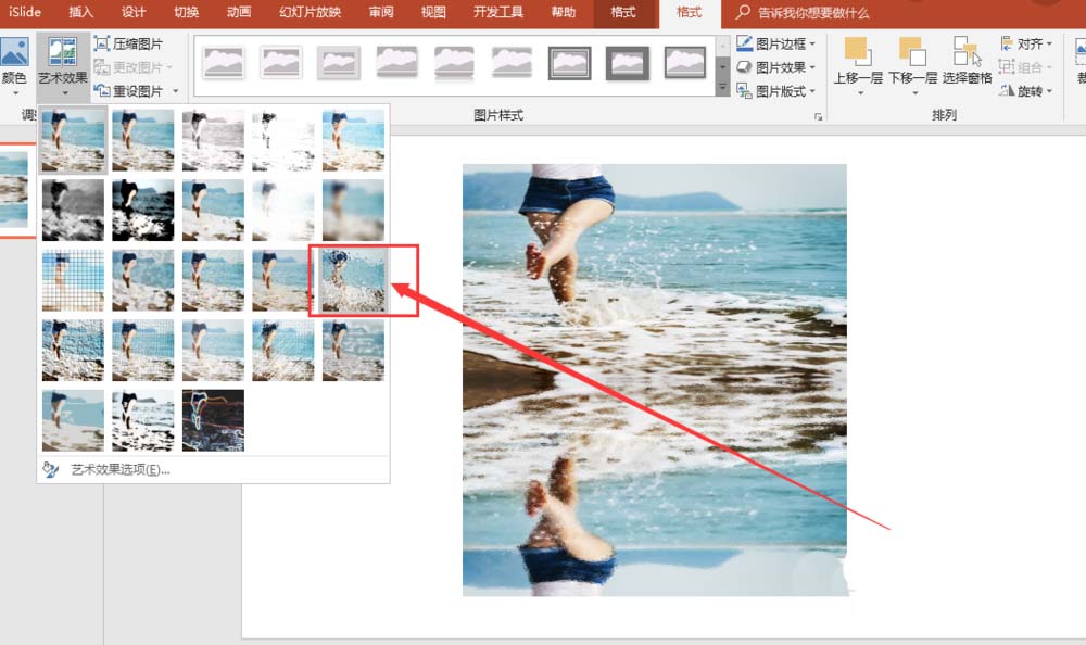 6、选择垂直翻转后的图片,在艺术效果里面选择如图的效果
