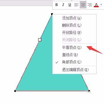 6、单击顶部顶点编辑点,右键选择“平滑顶点”。顶点就变成了弧形。