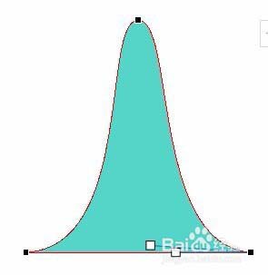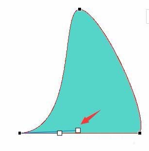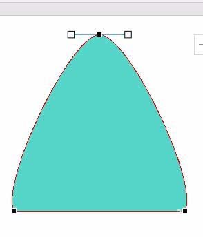 7、点击三角形左下角的顶点,出现控制柄,往右拖动控制柄改变为弧形。