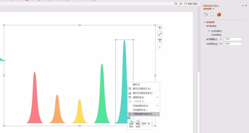 ppt中想要制作一个图表,该怎么制作创意的山峰柱状图表呢?下面我们就来看看详细的教程。