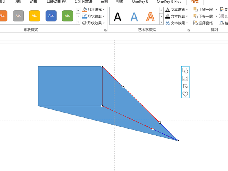 3、接着选择定点进行调整,直至形成一个斜三角形。