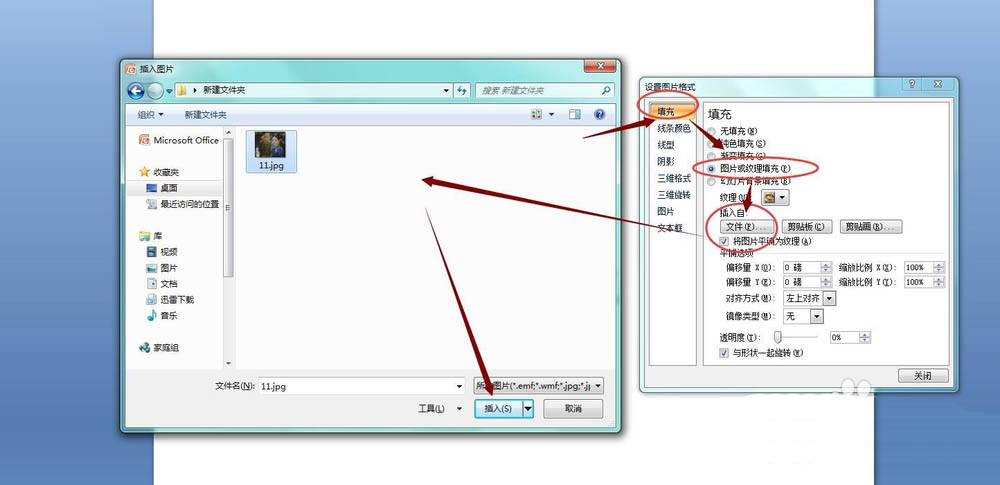 5、进入设置对象格式,选择填充,图片或纹理填充,然后插入文件,选择一张延禧攻略的剧照,然后点击插入