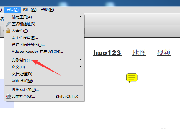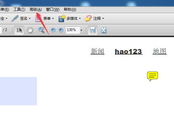 2、来点击Adobe Acrobat的菜单中的高级的选项。