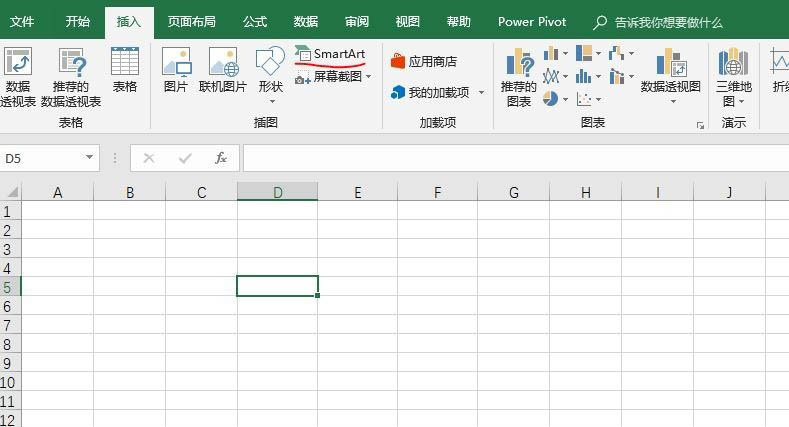 1、在excel中,点击“插入”菜单中的“SmartArt”按钮。