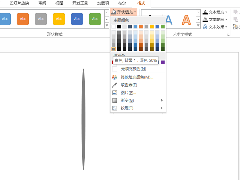 2、选择椭圆,设置形状轮廓为无轮廓,形状填充为灰色。