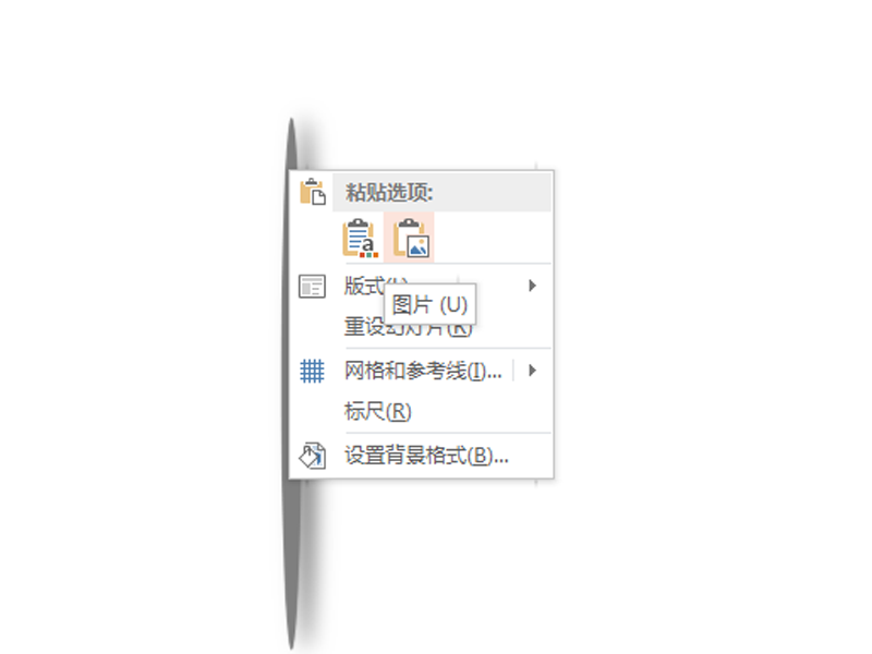 4、选择椭圆,执行ctrl+x剪切操作,接着右键单击选择粘贴选项中图片,将其转换为图片。