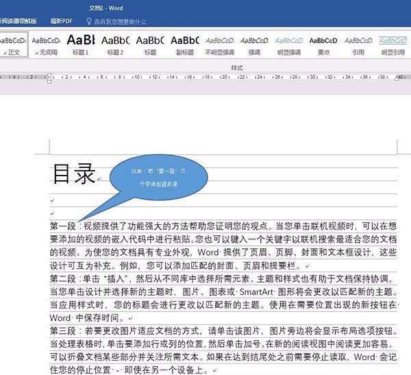 2、鼠标点击到要添加为目录的文字后方。