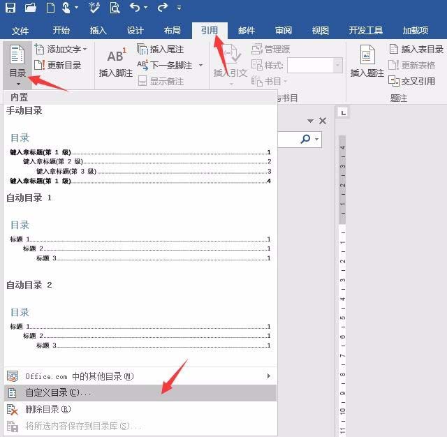 7、插入目录,选择自定义目录。