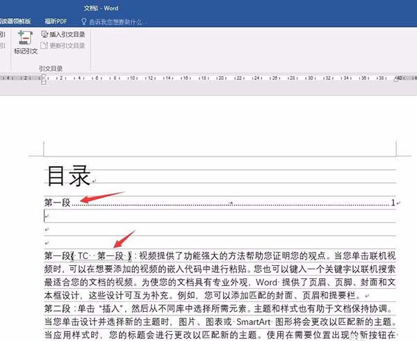 9、就能看到刚才在TC域输入的文字被添加到了目录中。