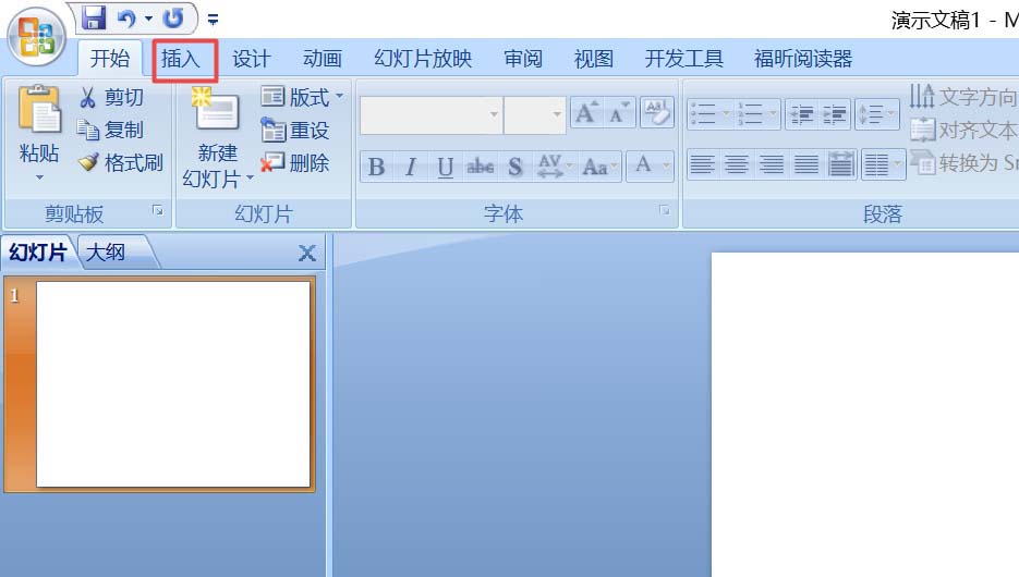 1、首先,我们打开我们电脑上面的ppt,然后我们点击工具栏中的插入;