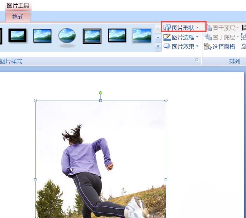 6、之后我们就可以看到照片的形状被我们更改了,我们点击空白处;