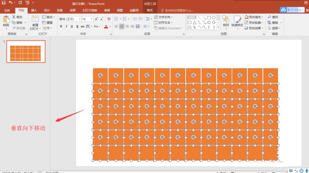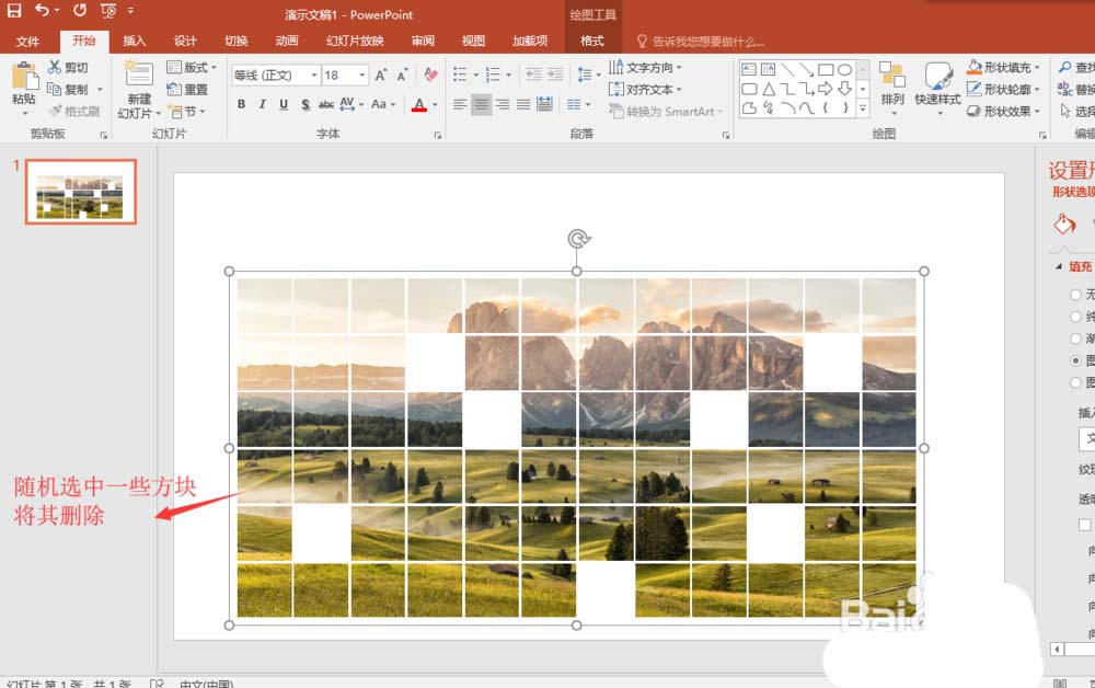 8、用鼠标左键随机选中几个小正方形,按键盘上delete键进行删除;这样,我们就通过PPT 2016制作了一个唯美的方格图片。
