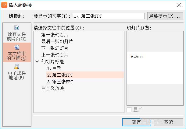 4、在右侧的选项中选择你的目标幻灯片,确认后点击“确定”。